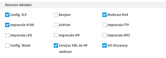 Em "Recursos Ativados" desmarcar "Bonjour", "IPP" e "IPPS"